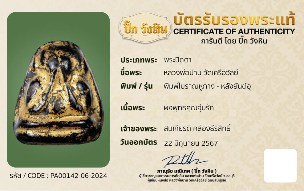 รหัสบัตรรับประกัน : PA00142-06-2024