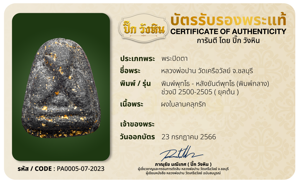 รหัสบัตรรับประกัน : PA0005-07-2023