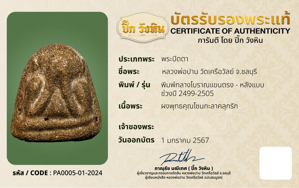 รหัสบัตรรับประกัน : PA0005-01-2024