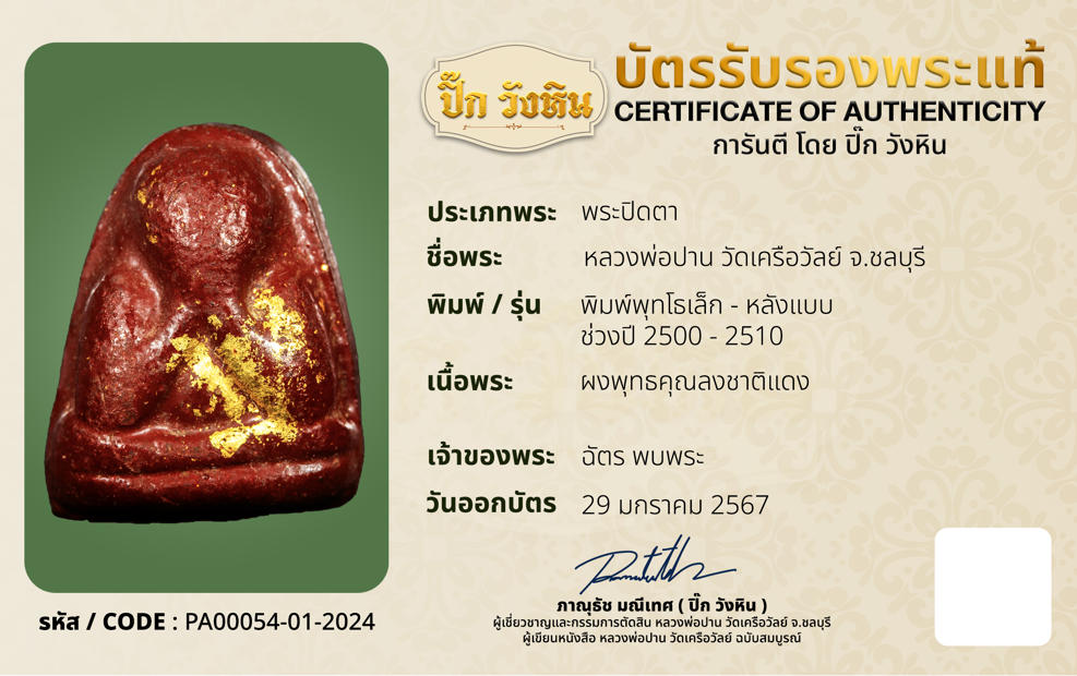 รหัสบัตรรับประกัน : PA0054-01-2024