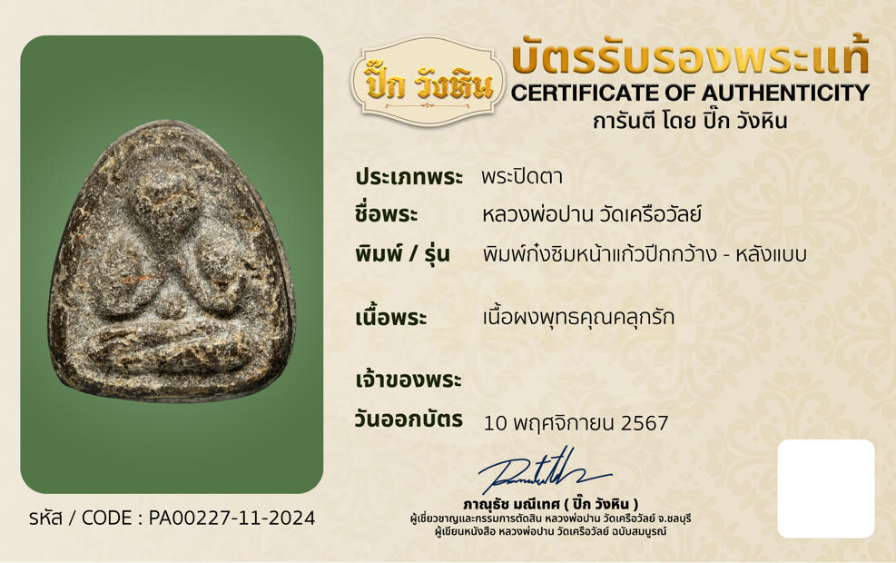 รหัสบัตรรับประกัน : PA00227-11-2024