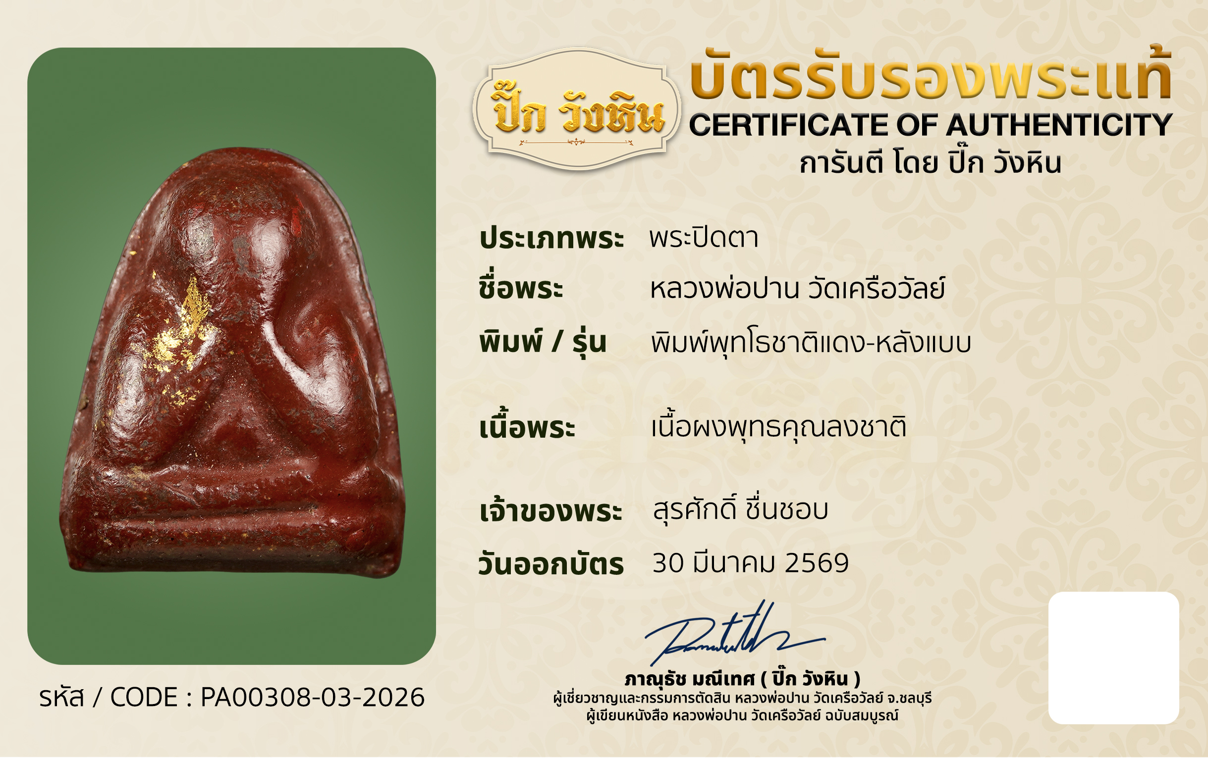 เจ้าของพระ : สุรศักดิ์ ชื่นชอบ