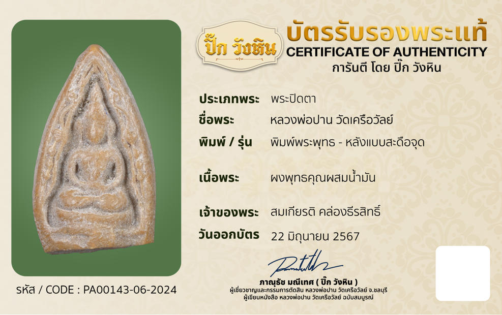 รหัสบัตรรับประกัน : PA00143-06-2024