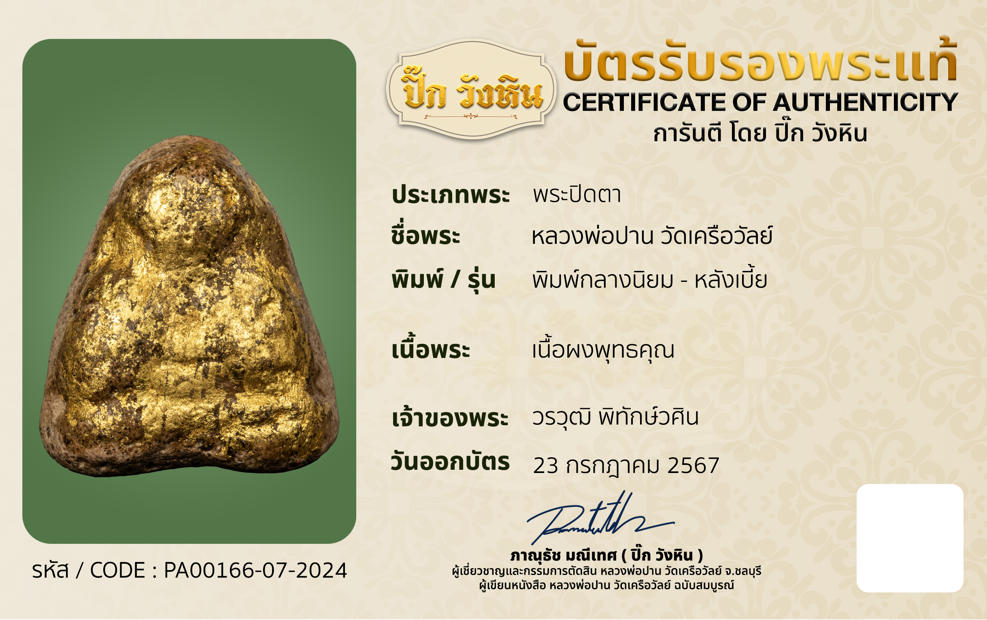 รหัสบัตรรับประกัน : PA00166-07-2024