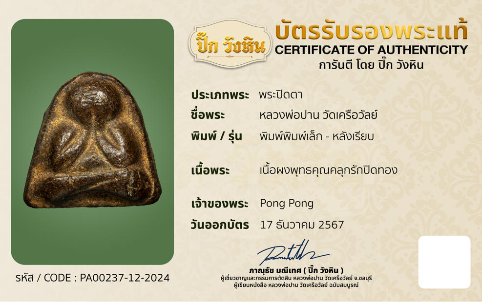 รหัสบัตรรับประกัน : PA00237-12-2024