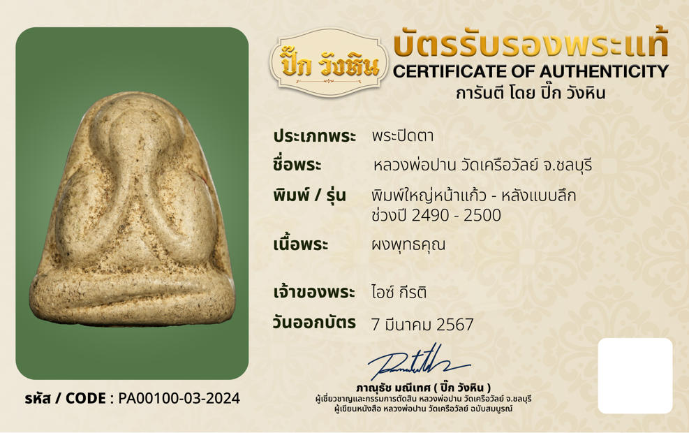 พิมพ์ใหญ่หน้าแก้ว - หลังแบบลึก (ออกวัดน้อย)