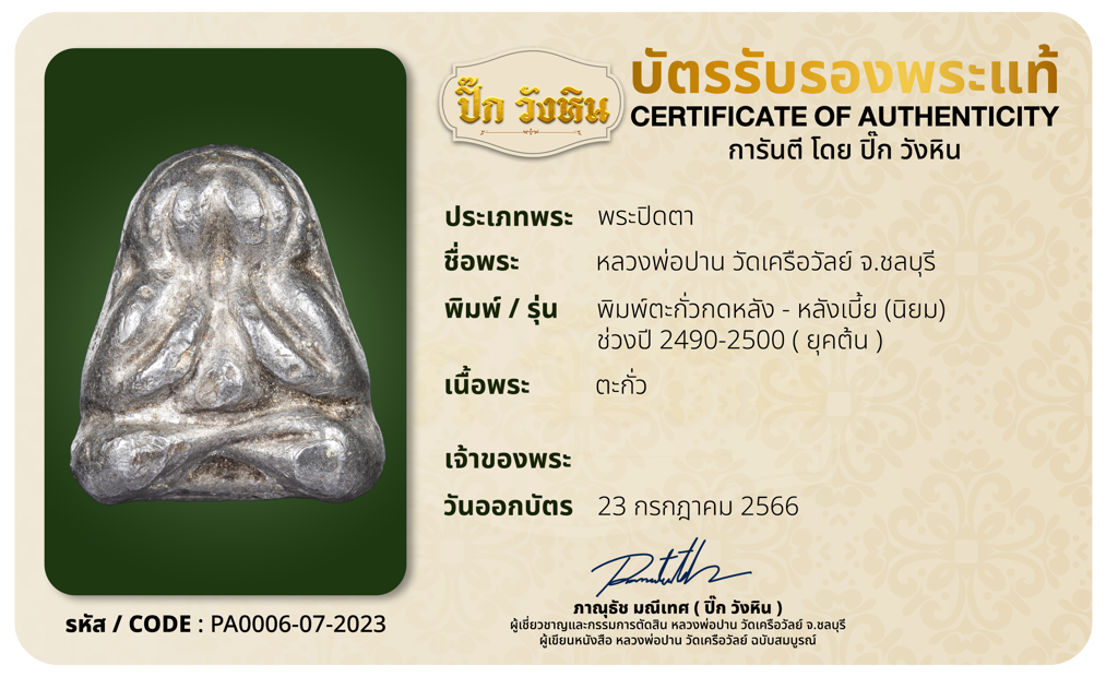 รหัสบัตรรับประกัน : PA0007-07-2023