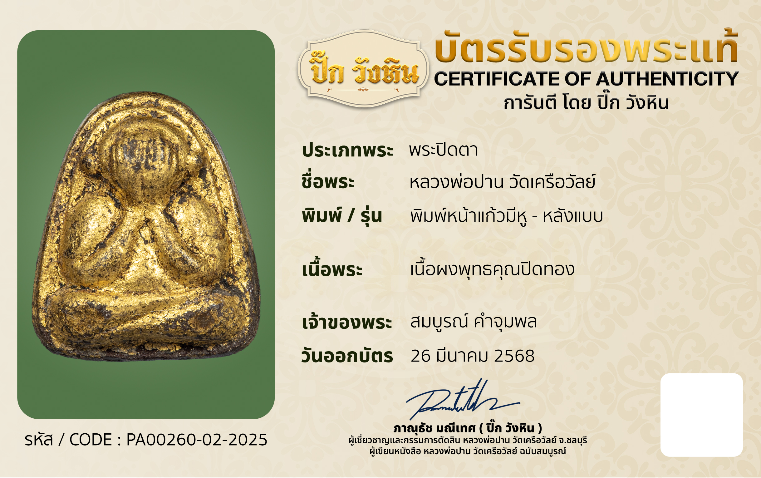 รหัสบัตรรับประกัน : PA00260-03-2025