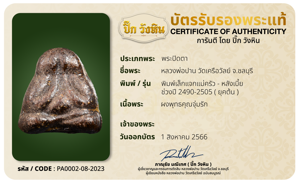 รหัสบัตรรับประกัน : PA0002-08-2023