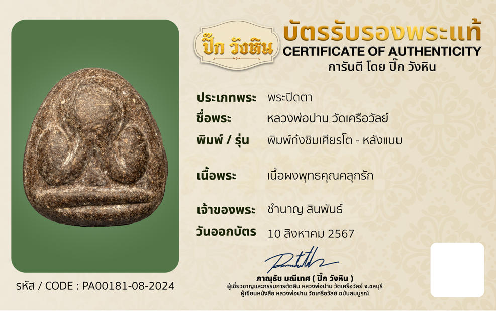 รหัสบัตรรับประกัน : PA00181-08-2024