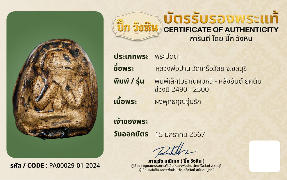 รหัสบัตรรับประกัน : PA0029-01-2024