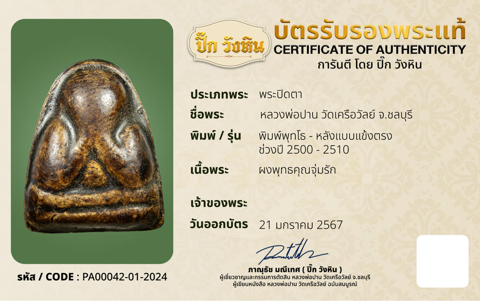 รหัสบัตรรับประกัน : PA0042-01-2024