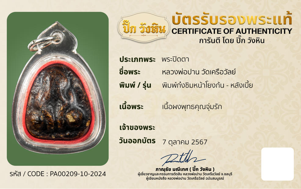 รหัสบัตรรับประกัน : PA00209-10-2024