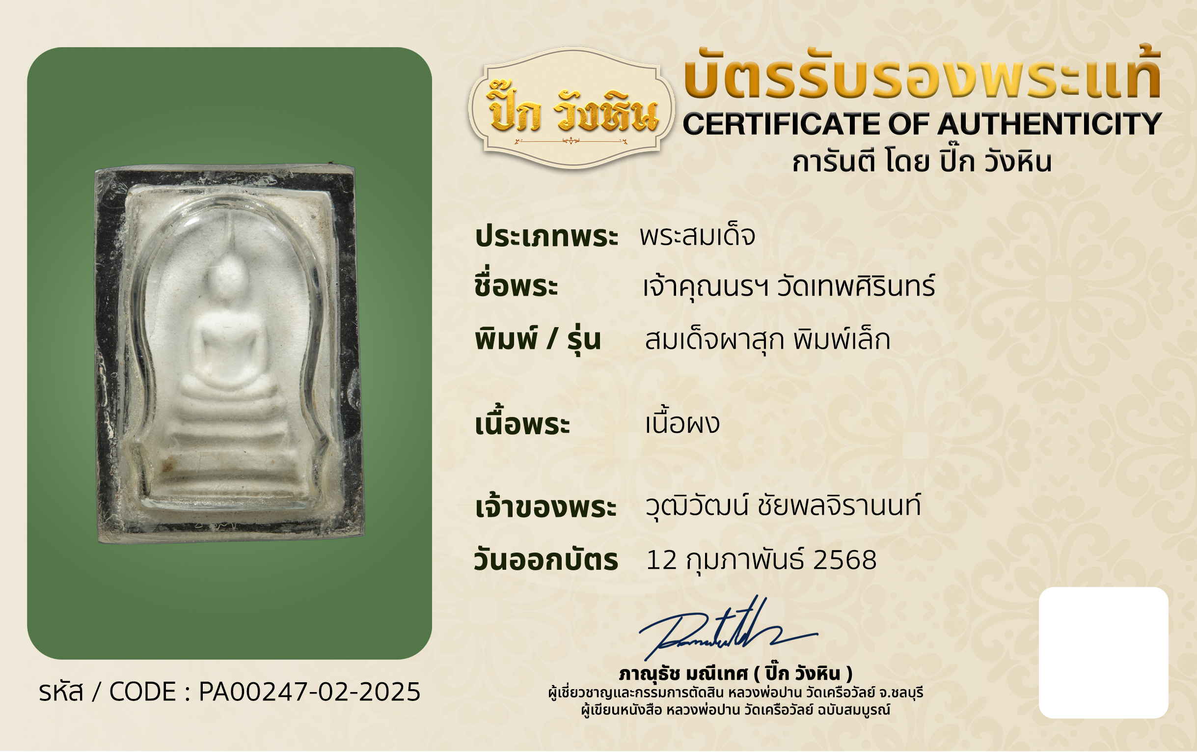 บริการออกบัตรรับรองพระเครื่อง
