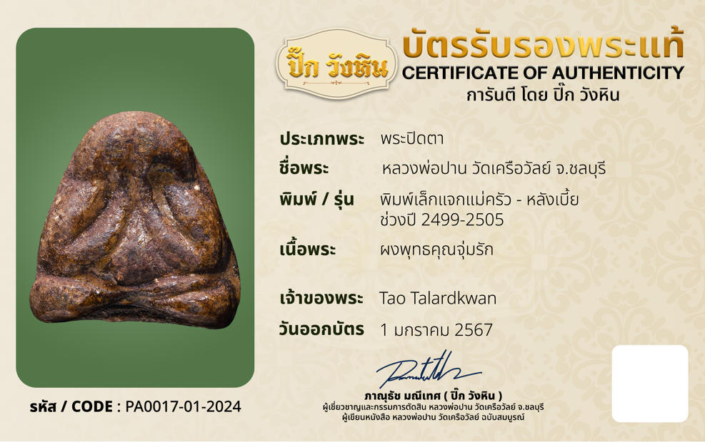 หลวงพ่อปาน พิมพ์เล็กแจกแม่ครัว หลังเบี้ย