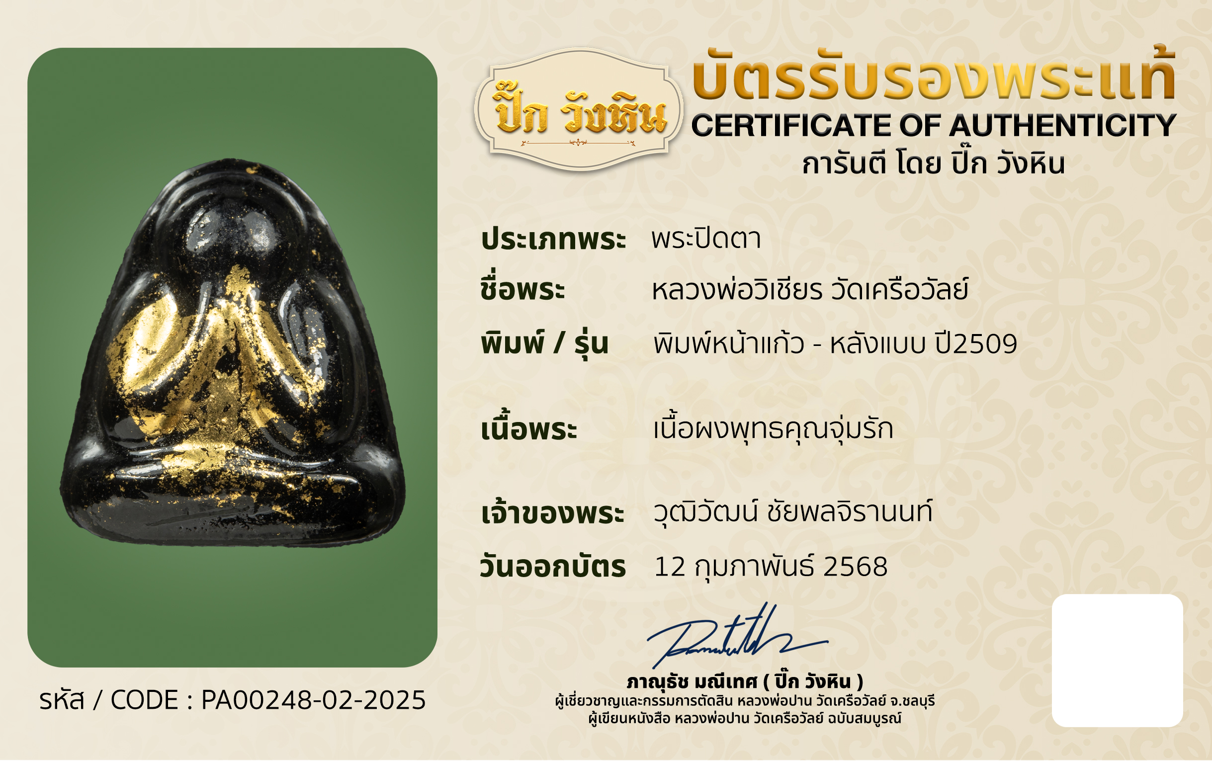 บริการออกบัตรรับรองพระเครื่อง