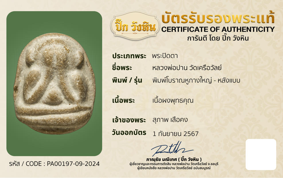 รหัสบัตรรับประกัน : PA00197-09-2024