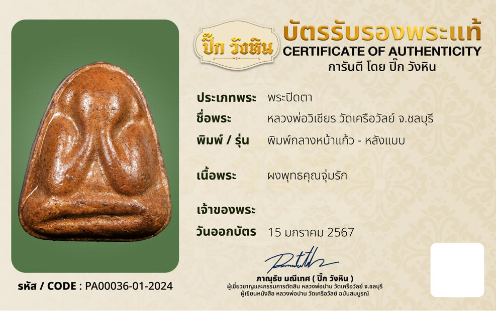 รหัสบัตรรับประกัน : PA0036-01-2024