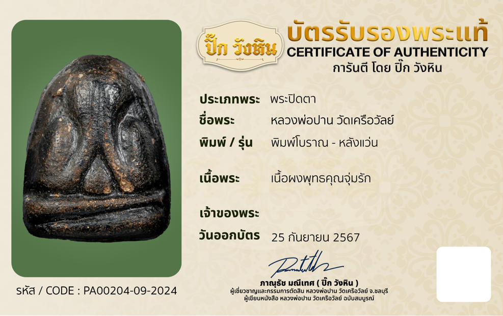 รหัสบัตรรับประกัน : PA00204-09-2024