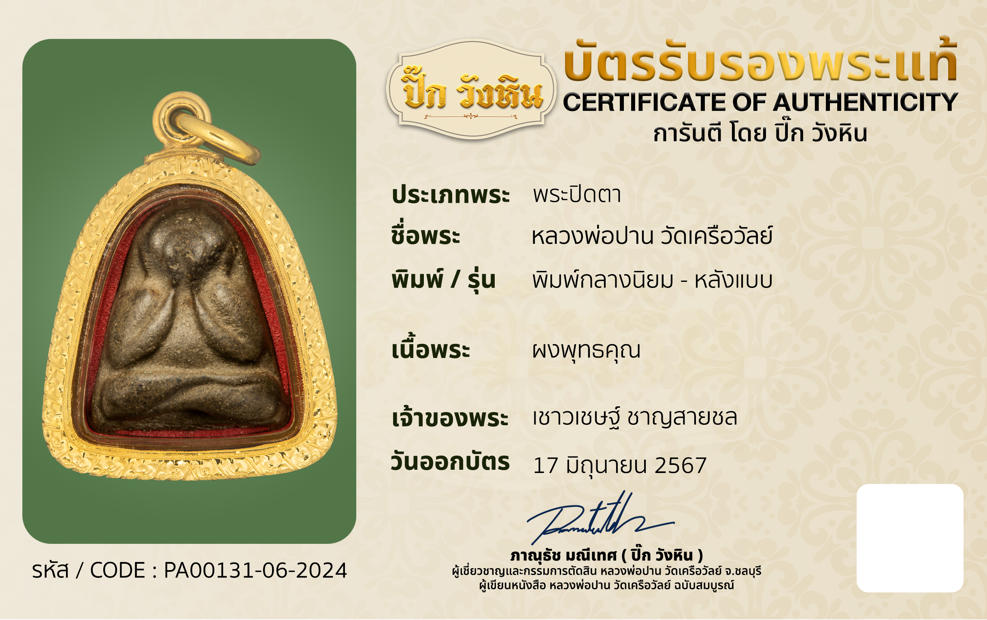 รหัสบัตรรับประกัน : PA00131-06-2024