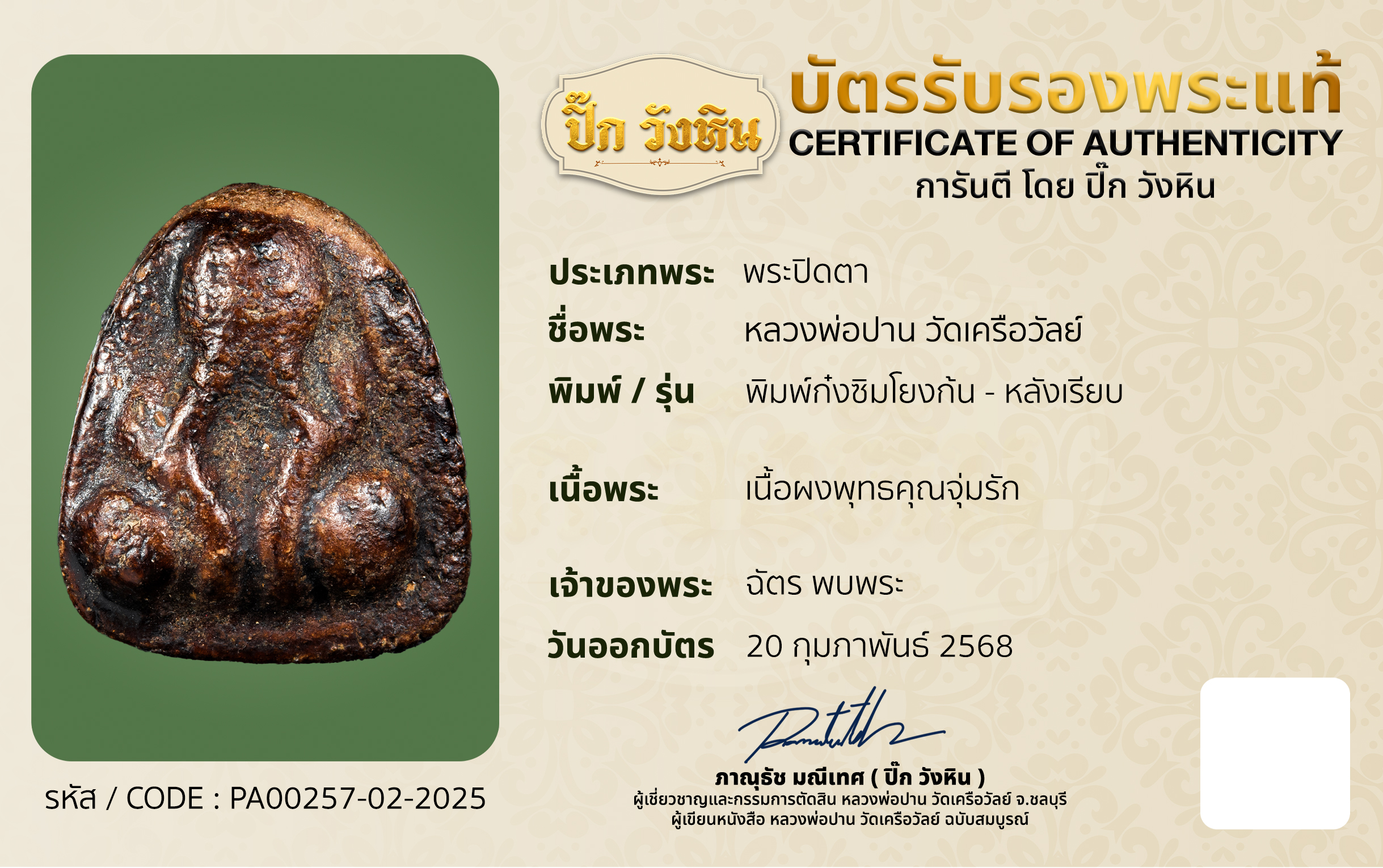 รับออกบัตรรับรองพระเครื่อง