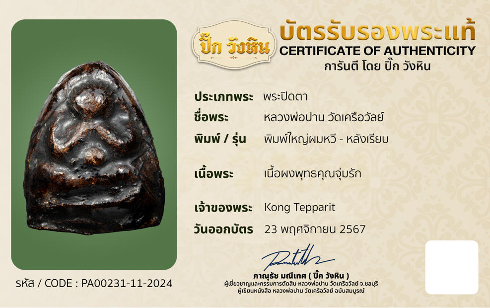 รหัสบัตรรับประกัน : PA00231-11-2024