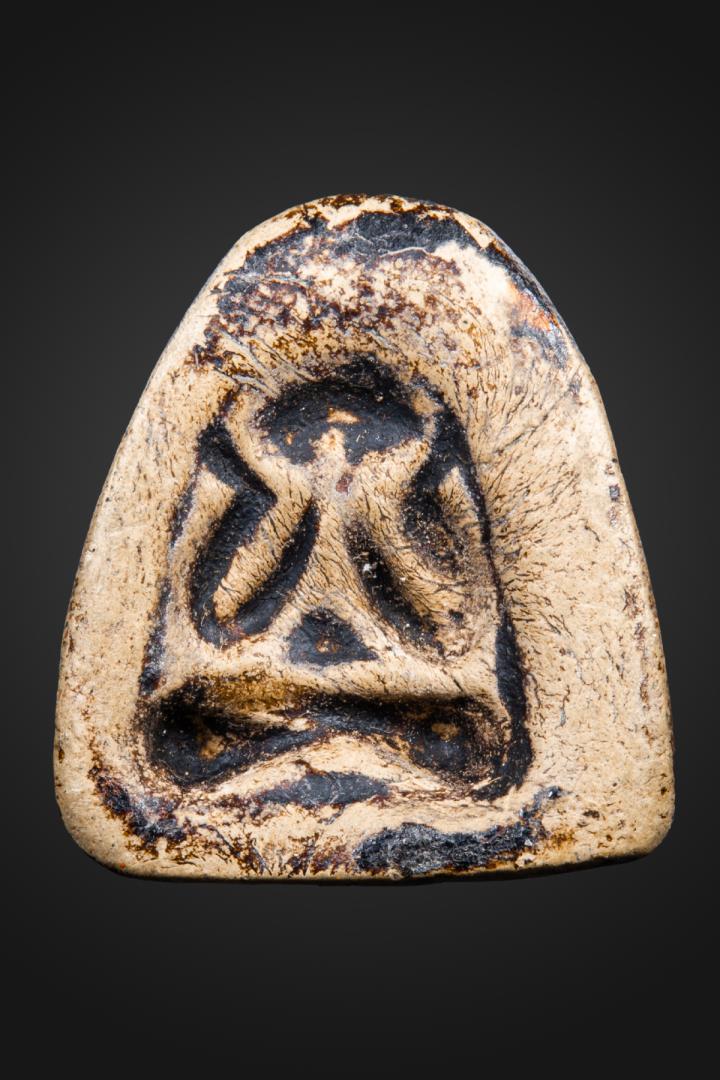พระปิดตาพิมพ์โบราณแขนอ่อน - หลังแบบ เนื้อผงจุ่มรัก ยุคต้น