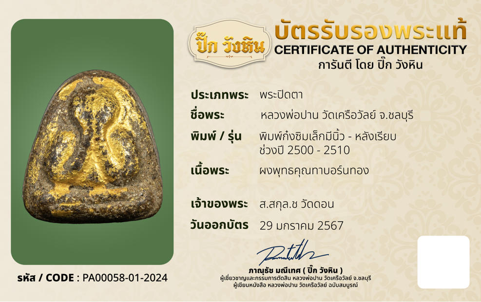 รหัสบัตรรับประกัน : PA0058-01-2024