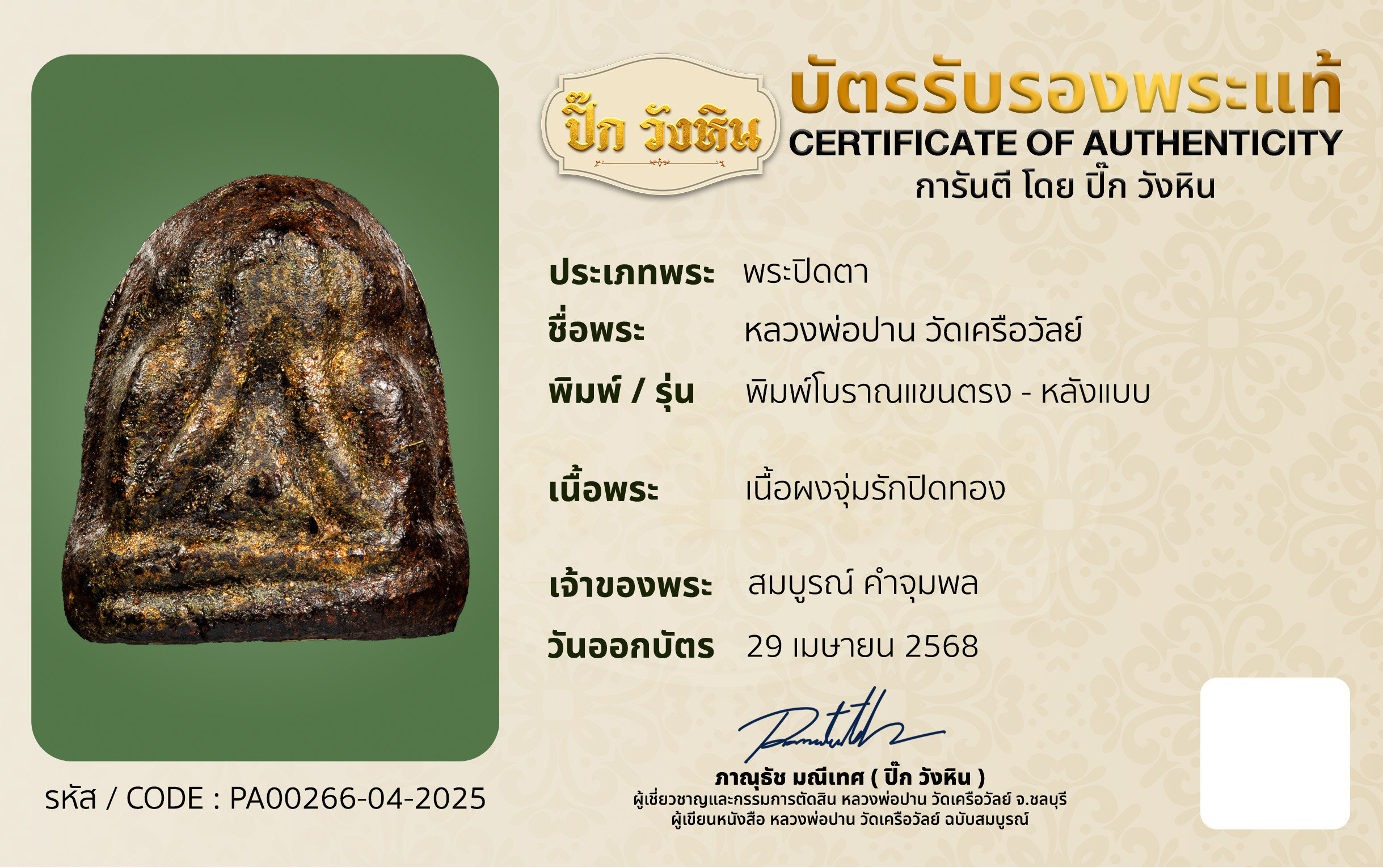 รับออกบัตรรับรองพระเครื่อง