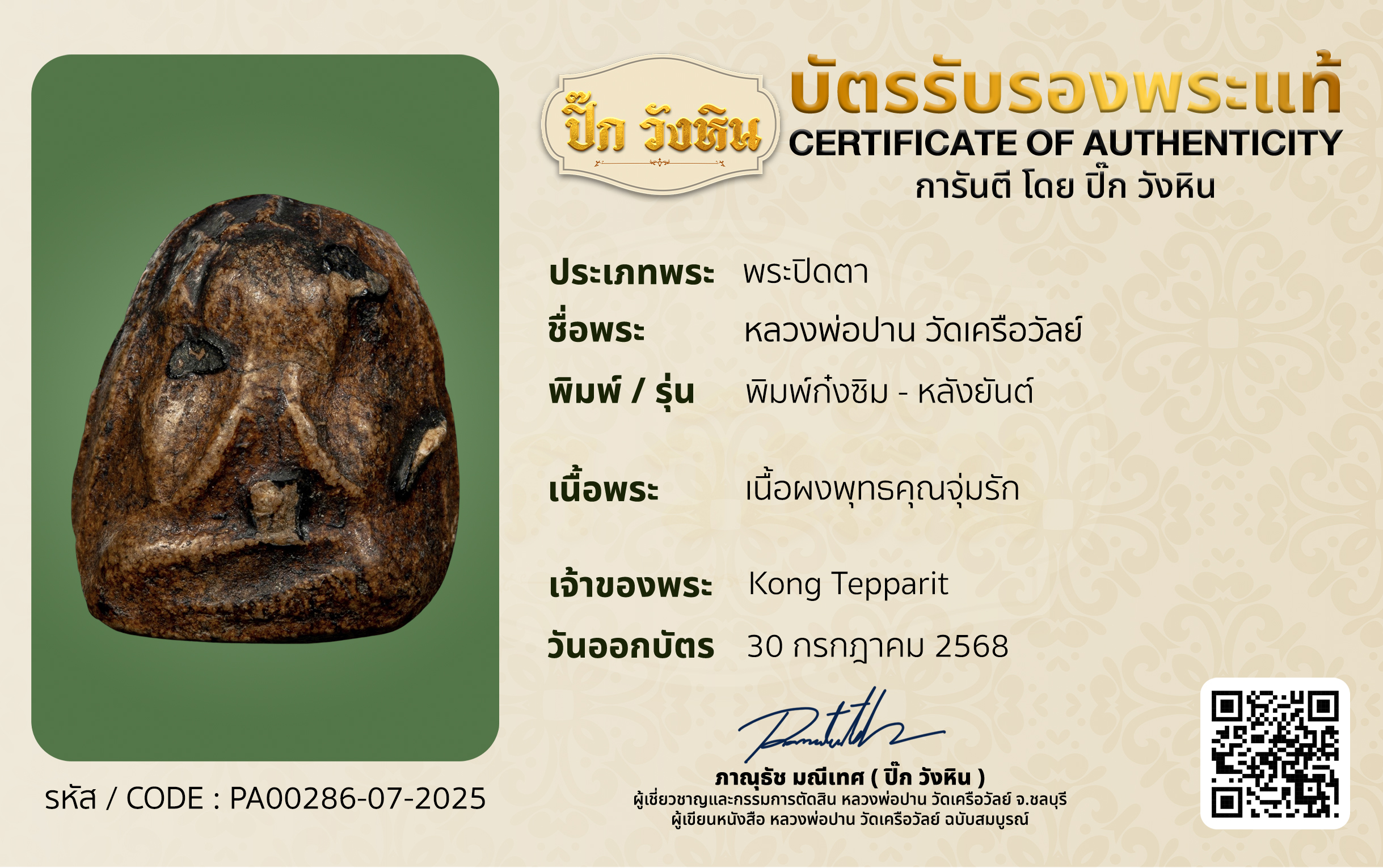 รับออกบัตรรับรองพระเครื่อง