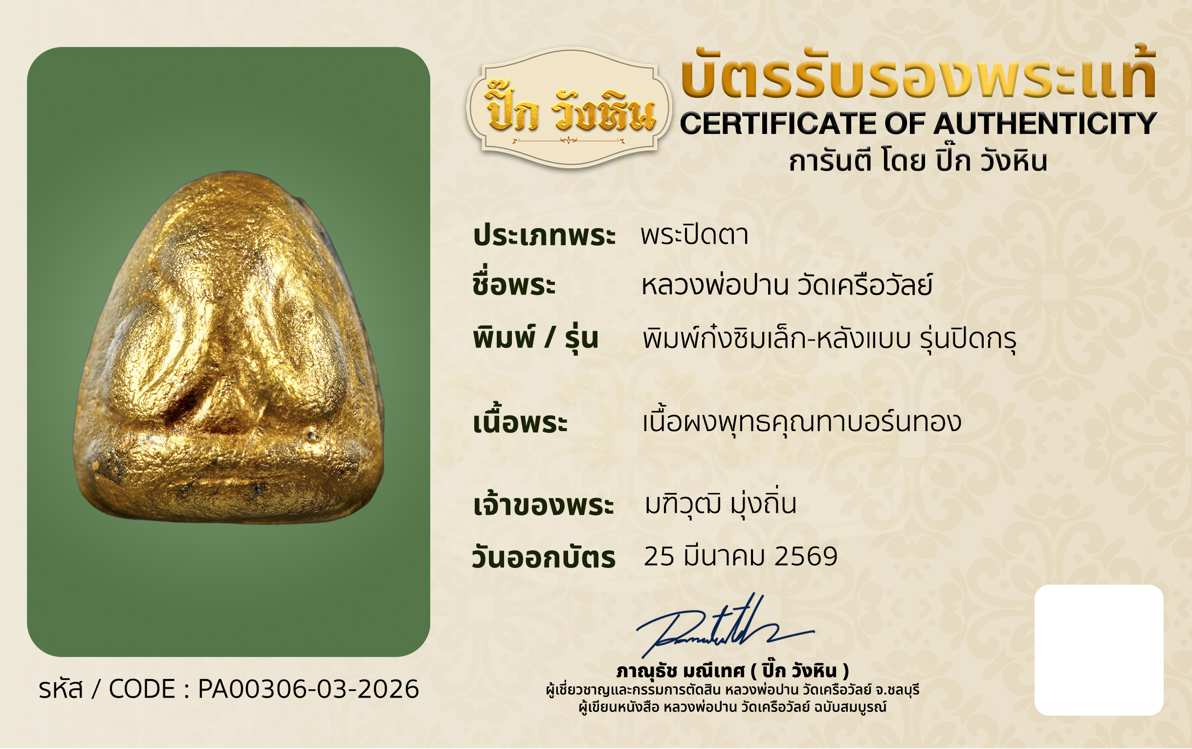 รหัสบัตรรับประกัน : PA00306-03-2026