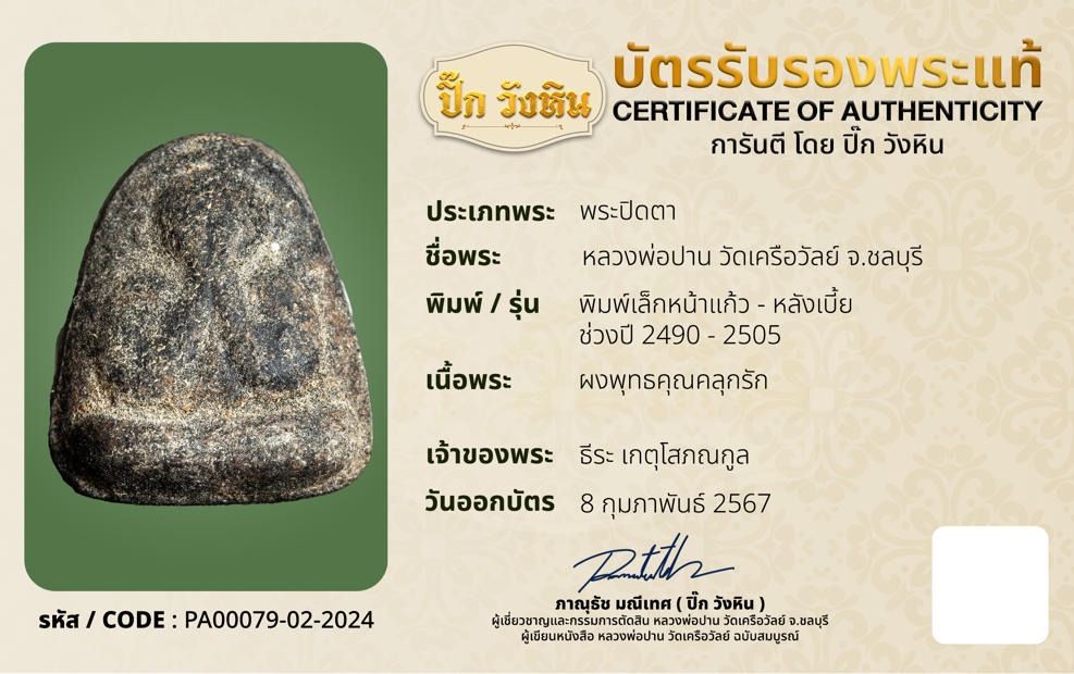 รหัสบัตรรับประกัน : PA00079-02-2024